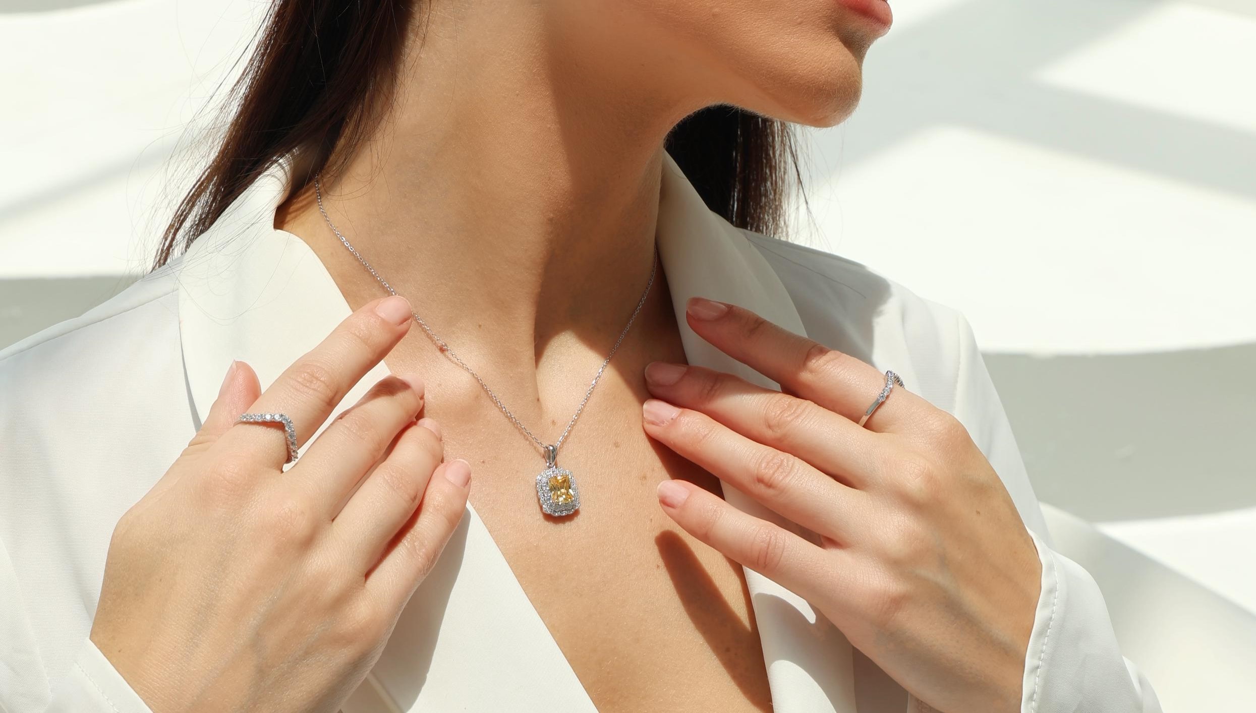 The Golden Radiance Necklace captures the essence of timeless elegance with its dazzling yellow gemstone framed by brilliant high-carbon synthetic diamonds. Crafted from 925 sterling silver, this piece radiates warmth, sophistication, and luxury — perfect for elevating both day and evening looks.